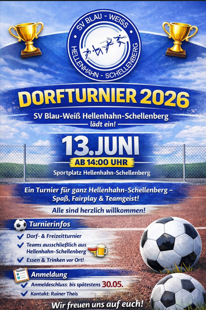 100 Jahre Sportverein Blau-Weiß Hellenhahn-Schellenberg bedeuten 100 Jahre Sportgeschichte und Vereinsleben mit allen Höhen und Tiefen. Ein ganzes Jahrhundert mit sportlichen Erfolgen und Niederlagen, Hoffnungen und Enttäuschungen, Jubel und Tränen, Freundschaften und Rivalitäten, aber vor allem mit sehr viel Engagement der Vereinsmitglieder/-innen und der zahlreichen ehrenamtlichen Helfer/-innen haben den Verein immer zusammengeschweißt und geprägt. Die tiefe Verbundenheit des SV Blau-Weiß mit dem Dorfleben, haben über all die Jahre dazu beigetragen, dass der Verein auch heute noch, mit über 400 Mitgliedern als größter Dorfverein, hervorragend aufgestellt ist, und im Besonderen auch durch viele Aktivitäten neben den sportlichen Wettkämpfen, die Dorfgemeinschaft fördert, unter- stützt und immer wieder Anlaufstelle für viele Jugendliche und Neubürger in Hellenhahn-Schellenberg ist.
